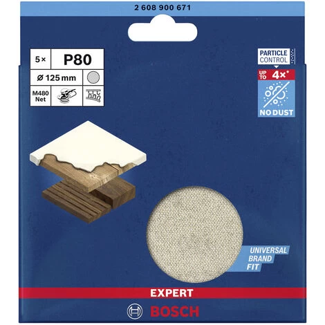5 x EXPERT M480 Schleifnetz für Exzenterschleifer, 125 mm, G 80, 5 Stück