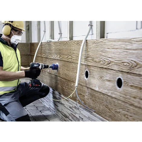 Ideal zum Schneiden sauberer Löcher mit einer Tiefe von bis zu 60 mm, z. B. zur Verlegung von Drähten und für Frisch- und Abwasserrohre, für Löcher für Steckdosen, Lichtschalter, Anschlusskästen