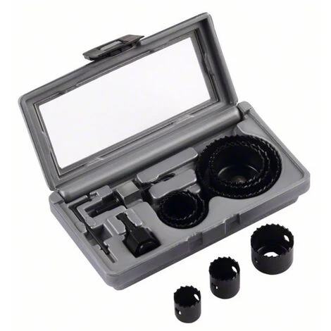 Lochsägen-Set. 11 teilig. Lochsägensortiment. Profiqualität mit gehärteten Zähnen. Ausgestattet mit besonders stabilem Aludruckguss-Grundkörper sind die Lochsägen geeignet für Hart- und Weichholz, furniertes Holz und beschichtete Spanplatten. Für viele Aufgaben bestens gerüstet: Sägekranz-Set für Rohrdurchführungen, Ventilationsinstallationen und Hohllochbohrungen in Küche und Bad. 5 Sägekränze mit gehärteten Zähnen in den gängigsten Durchmessern. Für saubere Bohrungen in Hart- und Weichholz, furniertem Holz und beschichteten Spanplatten. Ausgestattet mit besonders stabilem Aludruckgussgrundkörper. Für alle Elektrowerkzeugmarken geeignet