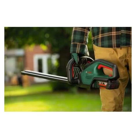 Kraftvolles Trimmen dichter Hecken mit kabellosem Komfort. Ausgezeichnete Pflege und Verjüngung von Hecken mit der kraftvollen AdvancedHedgeCut 36V-65-28. Große und dichte Hecken werden dank leistungsstarken Funktionen, leichtem Design und kabellosem Komfort schnell und mühelos getrimmt. Die kabellose AdvancedHedgeCut 36V-65-28 trimmt mühelos dichte Hecken und Büsche. Der bürstenlose Motor kombiniert starke Leistung mit maximaler Effizienz, während eine geringere Motorerwärmung eine längere Standzeit ermöglicht. Dank der leichten Handhabung dieses Werkzeugs werden Rücken, Schultern und Handgelenk des Gärtners weniger belastet. Schweizer Messer sorgen für präzise Schnitte, während das patentierte Bosch Anti-Blockier-System ein mögliches Verklemmen verhindert, und somit für übergangsloses Schneiden und geringere Ausfallzeiten sorgt. Dies ist der Allrounder zum Schneiden von bis zu 28 mm dicken Ästen und aller Heckenarten, einschließlich Weißdorn, Berberitze oder Schwarzdorn (Schlehe). Das Gerät ist Teil des 36V POWER FOR ALL-Systems. Ein einziger Akku kann für alle 36V POWER FOR ALL-Werkzeuge verwendet werden.