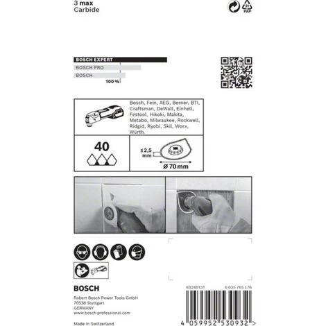 3 Anwendungen mit 1 Blatt – Das Entfernen einer beschädigten Fliese, ohne die gesamte Wand neu gestalten zu müssen, ist einer der großen Vorteile der Starlock Blätter – und mit dem Expert 3 max ist es noch einfacher. Mit diesem einen genialen Blatt kannst du alten Fugenmörtel ausschneiden, selbst schwer zugängliche Ecken erreichen und den Mörtel schleifen. Durch die einzigartige Tropfenform kann der Expert 3 max drei verschiedene Aufgaben bei der Fliesenreparatur erledigen. Es bietet ein hervorragendes Preis-Leistungs-Verhältnis und gewährleistet nahtloses Arbeiten. Mit seinem hochwertigen Carbide-Korn kann er den Mörtel um eine Fliese mühelos herausschneiden – und erreicht mit seiner Spitze selbst schwer zugängliche Ecken. Der Expert 3 max fungiert dann auch als Schleifplatte, um den alten Mörtel hinter der Fliese zu entfernen. Dies ist das Blatt für oszillierende Multifunktionswerkzeuge, das für Fliesenarbeiten benötigt wird: ein einfaches Design, das deine Arbeit erleichtert und maximale Effizienz gewährleistet. Mit dem Bosch Expert 3 max hast du immer das richtige Zubehör zur Hand. Starlock Aufnahme für maximale Kraftübertragung und bequemen Klingenwechsel innerhalb von 3 Sekunden.