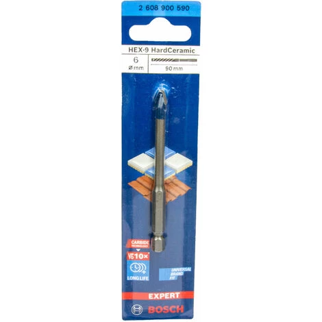 Dieses Fliesen- und Keramik-Bohrer Expert HEX-9 HardCeramic von Bosch Professional wurden speziell für harte Anwendungen in Hartkeramik entwickelt, da es mit normalen Fliesenbohrern immer schwieriger wird die großen und immer härter werdenden Wandfliesen zu bohren. Sie können in allen handelsüblichen Akkuschraubern und Bohrmaschinen verwendet werden (1/4 Sechskant Aufnahme) und müssen ohne Schlag gebohrt werden.