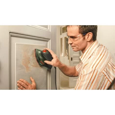 Das Multitalent PSM 80 A ist die ideale Wahl für die leichte Bewältigung verschiedener gängiger Schleifarbeiten. Er wurde entwickelt für müheloses Arbeiten in Ecken, an Kanten und an kleineren flachen Oberflächen. Dank des Klettverschlusssystems lässt sich Schleifpapier schnell und leicht wechseln. Die Microfilter-Staubbox reduziert Staub für mehr Sauberkeit im Arbeitsbereich. Dieser Multischleifer eignet sich zum Schleifen von Hart- und Weichholz sowie lackierten und gestrichenen Oberflächen, und er erledigt kleinere Arbeiten an Möbeln, Türen, Rahmen, Regalen und Holzspielzeug.