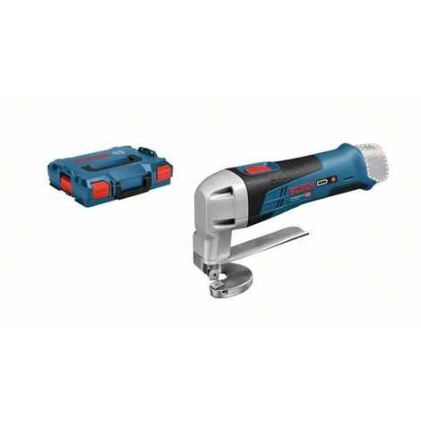 Bosch Akku-Blechschere GSC 12V-13, Solo VersionDie GSC 12V-13 Professional ist die kompakteste und handlichste Akku-Blechschere in der 12V-Kategorie von Bosch.Sie hat eine extrem kompakte und ergonomische Bauform und ist daher perfekt für schnelle Schnitte.Ihr Kopf wurde eigens für eine ausgezeichnete Beweglichkeit in Kurven optimiert.Die Schere ist zum Schneiden einer Vielzahl von Metallen mit einer Dicke von bis zu 1,3 mm geeignet.Sie ist kompatibel mit allen Bosch Professional 12V-Akkus und -Ladegeräten (Professional 12V System).Im Lieferumfang enthalten:Innensechskantschlüssel1/1 L-BOXX-Einlage für Gerät und Ladegerät (1 600 A00 2V0)L-BOXX 102 (1 600 A01 2FZ) | Eigenschaften: Länge: 443 mm, Breite: 360 mm, Höhe: 122 mm, Spannung: 12 V, Akkuspannung: 12 V, Produktart: Akku-Blechschere, Akku im Lieferumfang enthalten: Nein, Akkuanzahl: 0