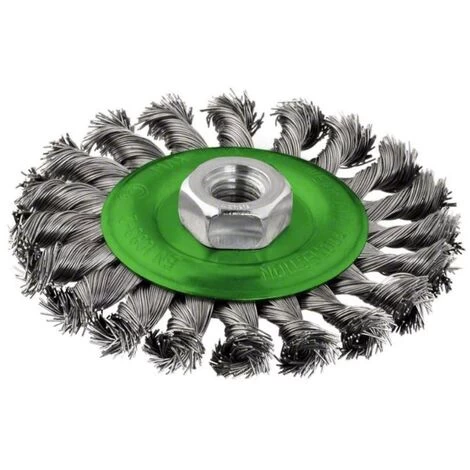 Produkttext, ZB grau: Scheibenbürste – gezopfter Draht, rostfreiOptimal geeignet für das Reinigen von Schweißnähten auf Edelstahl.Geeignet für schwere Reinigungsarbeiten bei hohen Umfangsgeschwindigkeiten auf kleineren Flächen, in Rillen oder an Kanten auf Edelstahl, Aluminium oder Buntmetallen, wie Entfernen von starkem Rost, Entlacken, Entschlacken, Entgraten, Entzundern.Passend zu allen Winkelschleifern mit M 14 Gewinde sowie GGS 6 S Professional
