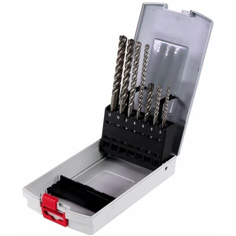 Der SDS plus-7X Bohrer bietet eine hervorragende Nutzungsdauer beim Bohren in armierten Beton. Sein 4-Schneider-Vollkopf besteht aus höchstqualitativem Carbide, wodurch der Kopf verstärkt wird und eine außergewöhnliche Schlagfestigkeit entsteht. Seine durchgängige Verteilung der Bohrkraft garantiert, dass kein Leistungsverlust auftritt, womit die Gesamtlebensdauer erhöht wird. Die einzigartige Diffusionsschweißtechnologie (IDS) von Bosch bietet starken Halt zwischen Kopf und Hals. Darüber hinaus reduziert das 4-spiralige Design mit breiten Kanälen den Verschleiß am Bohrer, indem ein effektiver Bohrmehlabtransport gewährleistet wird. Dieser Bohrer ist für den Einsatz für Bohrhämmer in Mauerwerk, Beton und armierten Beton vorgesehen. Er ist kompatibel mit Bohrhämmern mit SDS plus System